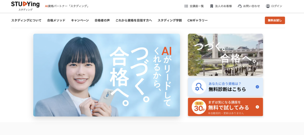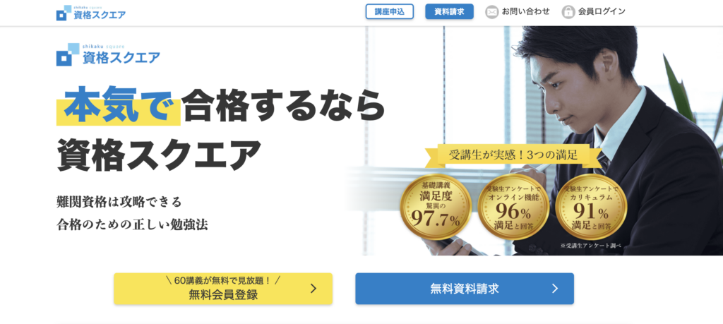 資格スクエアは、AI技術を活用した学習システムが特徴のオンライン予備校です。近年、効率的な学習を求める社会人を中心に注目を集めています。