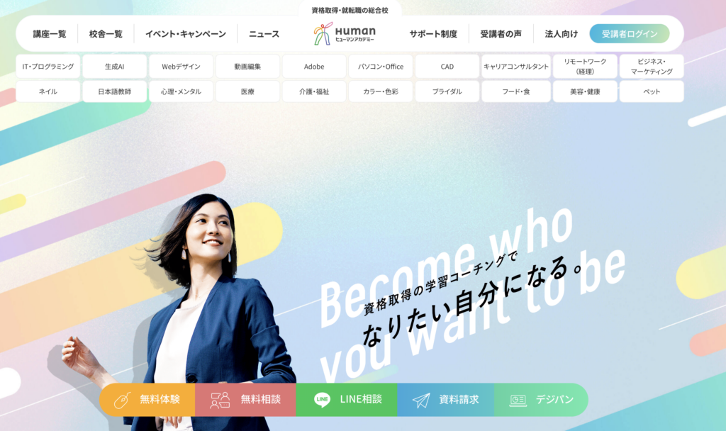 中でも注目なのが、未経験からでも実践的なスキルが身につくと評判の「ヒューマンアカデミー」です。