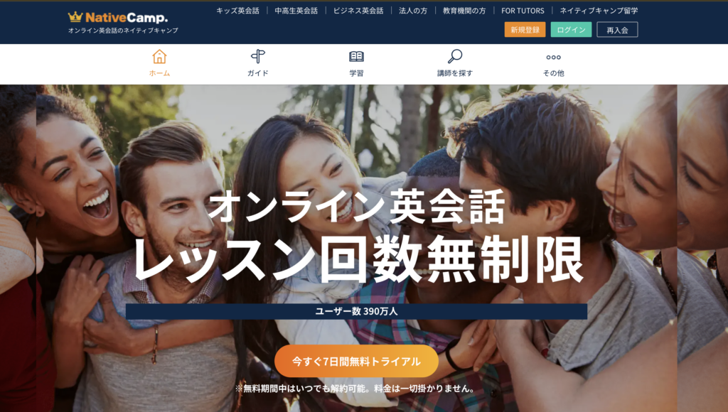 - とにかく話す量を増やしたい → NativeCamp