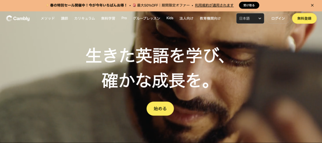 Camblyは、ネイティブ講師とのマンツーマンレッスンに特化したオンライン英会話サービスです。講師は全員英語ネイティブスピーカーのため、自然な発音や表現を学べる点が大きな魅力です。