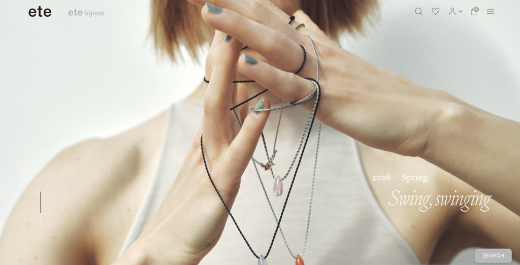 eteは、シンプルで洗練された都会的なデザインが特徴のジュエリーブランドで、特に30代女性を中心に人気を集めています。主張しすぎない絶妙なデザインは、日常使いからオフィスシーンまで幅広く対応できる点が魅力です。